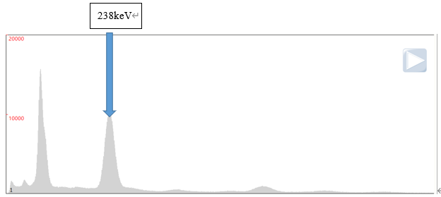 212Pb的基本性质:半衰期10.64,衰变产生β⁻射线,同时会释放主峰为238.6 keV的γ射线(射线概率44.6%),可以通过检测238 keV ±10%的γ射线来对212Pb进行定量分析[6]。使用Wizard 2480 γ计数器对212Pb进行检测,能谱图见图5。