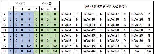 备注说明:dPCR检测panel中InDel位点检测阳性用“1”表示,阴性用“0”表示