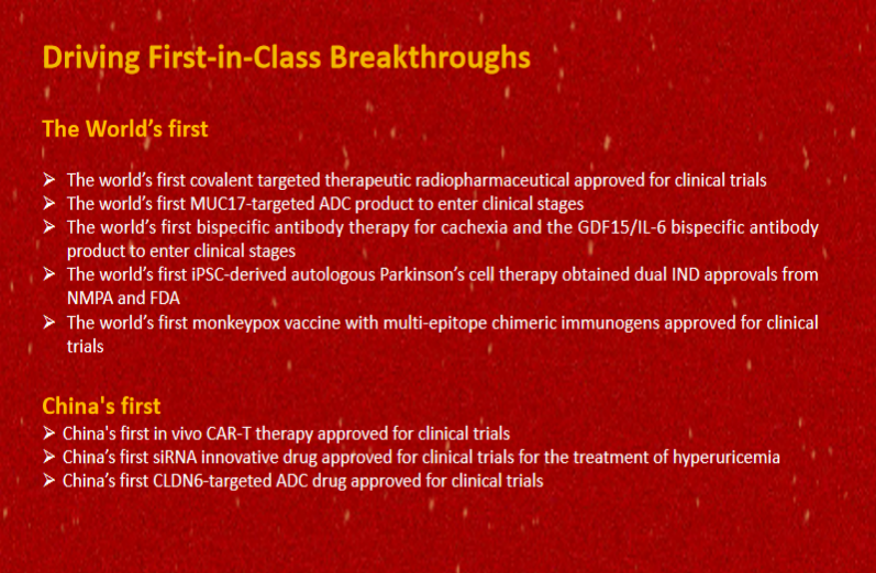 In 2025, we successfully supported over 10 “first-in-class” breakthroughs globally. Representative pioneering projects are as follows